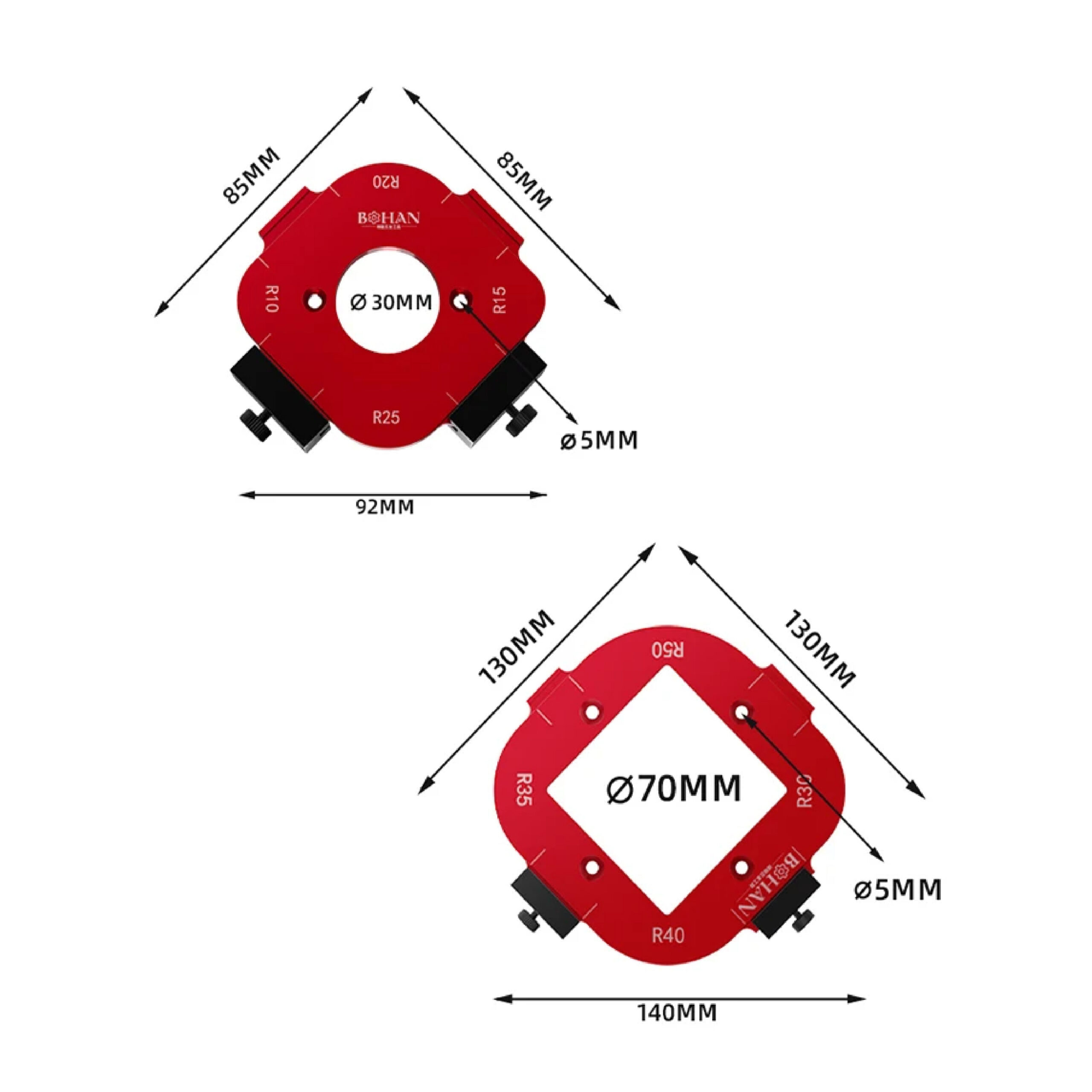 Gabarit de Défonceuse pour Rayons de Coins (R10/15/20/25/30/35/40/R50).